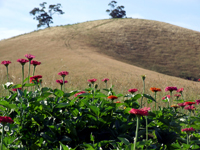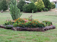 It has been decided to plant mainly flowering native shrubs and groundcovers suited to the climatic conditions of Rock Dhu, but also to plant a number of different garden flowers to bloom in Spring and Summer. As the soil is typically basalt clay, the beds have been treated with gypsum and potting mix. Sheep “poo” is used extensively as fertiliser – after all, there is an abundance of it on Rock Dhu.