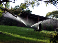 Lawns in the house yard are kept green and lush by watering direct from Warlands Creek.